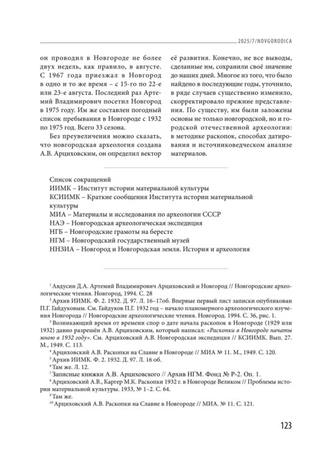 1 Авдусин Д.А. Артемий Владимирович Арциховский и Новгород // Новгородские архео-