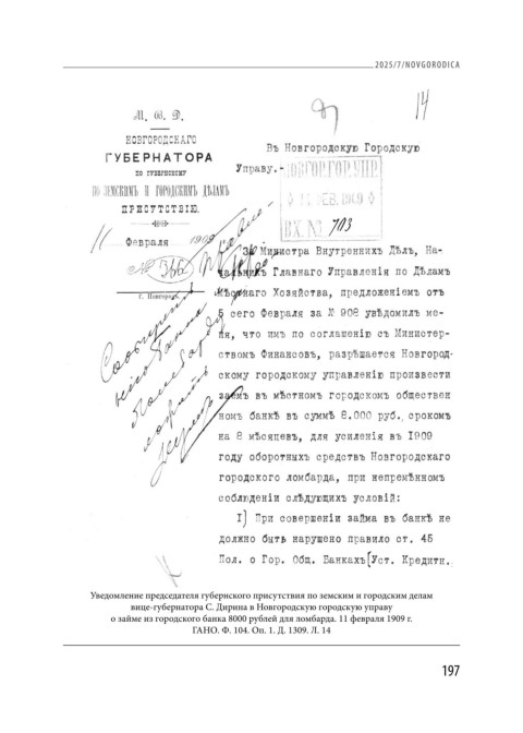 о займе из городского банка 8000 рублей для ломбарда. 11 февраля 1909 г.