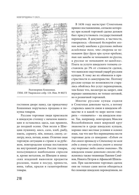 Русские торговые люди приезжали рить – «толмачить» – на шведском язы-