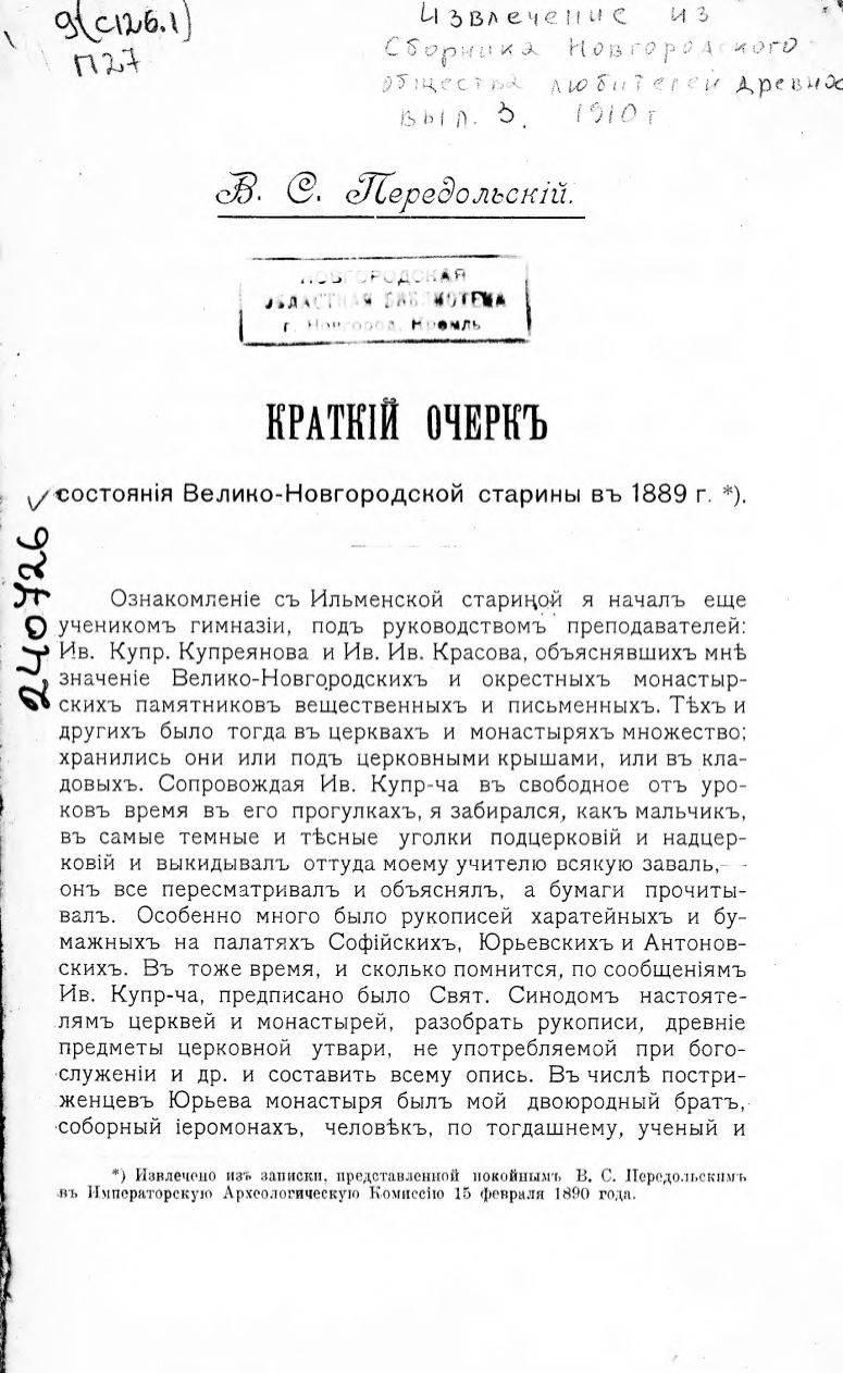 Передольский, В. С. Краткий очерк состояния Велико-Новгородской старины в 1889 году - page 2