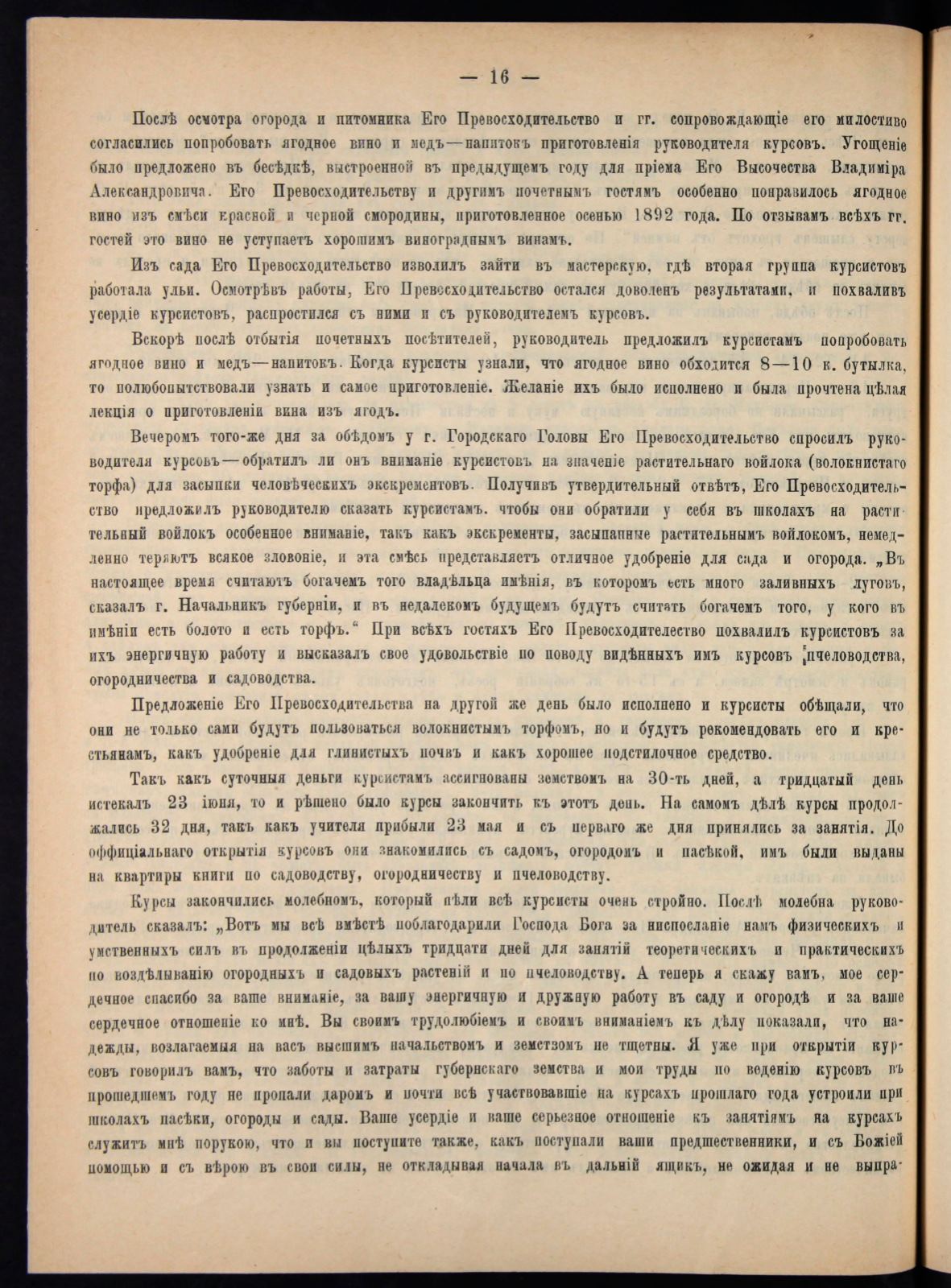 имѣніи есть болото и есть торфъ." При всѣхъ гостяхъ Е я ІІревосходителество похвалилъ курсистовъ за
