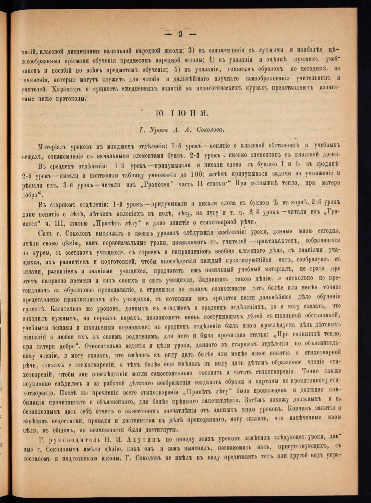 Сахъ г. С о коло въ высказалъ о своихъ урокахъ слѣдующія замѣчанія: уроки, данные мною сегодня,