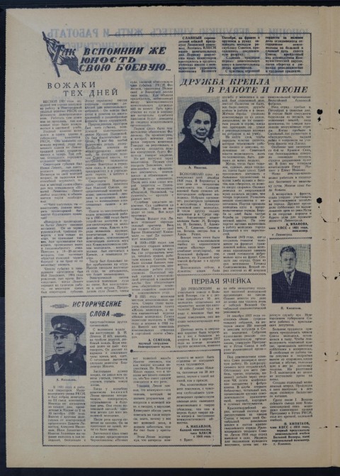 Членом губкома и заве- Многие о ж и д а л и настояпю- сомольская работа отсут- Вспоминаешь сейчас, и ряд состоял из 40 девушек