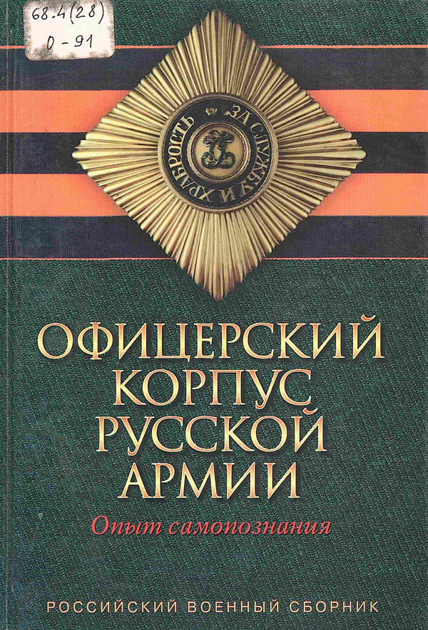 - Офицерский корпус русской армии : опыт самопознания / сост.: А. И. Каменев, И. В. Домнин, Ю. Т. Белов [и др.] ; под общ. ред. И. И. Ефремова ; Военный ун-т. - Москва : Русский путь, 2000. - 638 с. - (Российский военный сборник ; вып. 17). Шифр: 68.4(28) О 91.