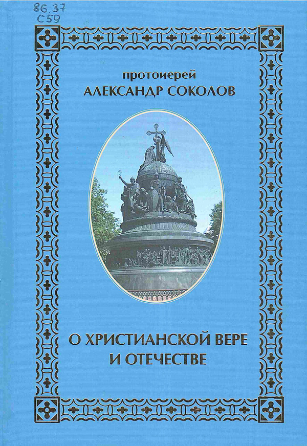 - Соколов, А. Н. О христианской вере и Отечестве / протоиерей Александр Соколов. - Нижний Новгород : Кварц, 2014. - 87 с. Шифр: 86.37 С 59.
