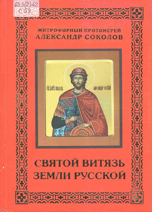- Соколов, А. Н (протоиерей). Святой витязь земли русской : святость жизни благоверного великого князя Александра Ярославича Невского / А. Н. Соколов ; фото А. Н. Рябов. - Нижний Новгород : [б. и.], 2008. - 359 с. : ил. Шифр: 63.3(2)42 С 59.