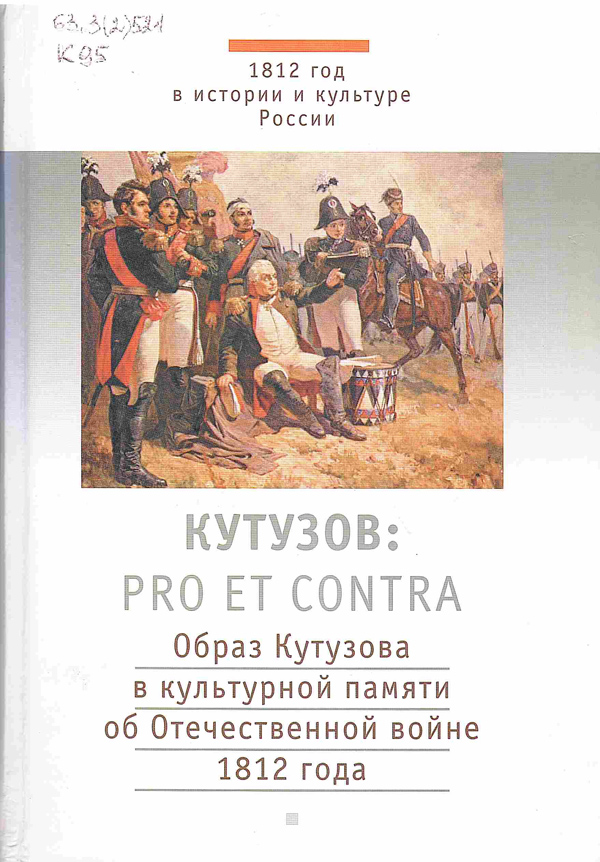 - Кутузов: pro et contra : образ Кутузова в культурной памяти об Отечественной войне 1812 года : антология / редкол. В. Е. Багно [и др.], сост., авт. вступ. ст., коммент. В. В. Лапина, сост. В. Л. Гончарова. - Санкт-Петербург : Изд-во Рус. Христианской гуманит. акад., 2012. - 942 с. : ил. - (Русский путь: pro et contra). Шифр: 63.3(2)521 К 95.