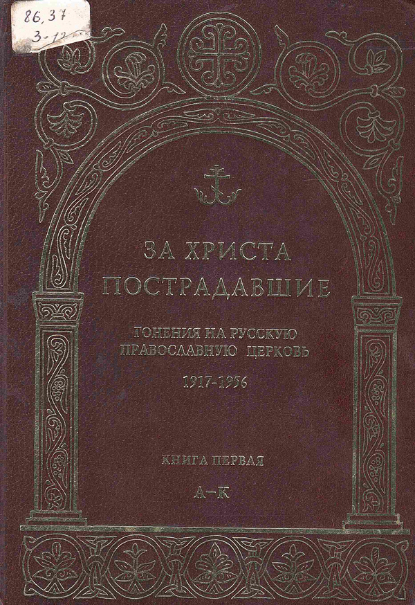 - За Христа пострадавшие : гонения на Русскую Православную Церковь. 1917 – 1956 : биографический справочник / общ. ред. прот. В. Воробьева. - Москва : Издательство Православного Свято-Тихоновский Богословский Ин-т, 1997. - Кн. 1 : А - К. - 696 с. - (Материалы по новейшей истории Русской Православной Церкви). Шифр: 86.37 З 12.