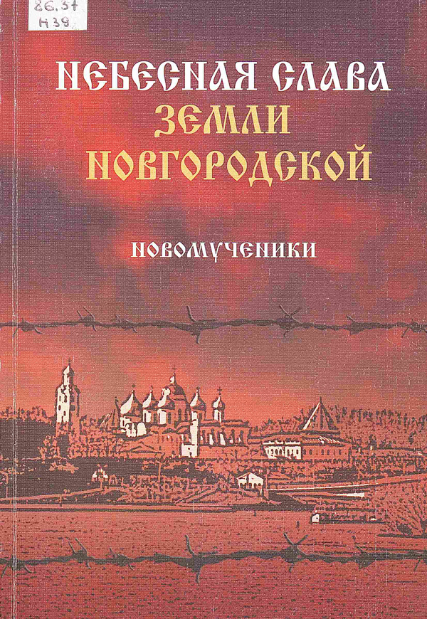 - Небесная слава земли Новгородской : избранные жития новых мучеников и исповедников Церкви Русской / Новгородская Епархия ; авт.-сост. А. С. Жукова ; ред. протоиерей С. Мельников. - Великий Новгород : [б. и.], 2017. - 287 с. : ил. Шифр: 86.37 Н 39.