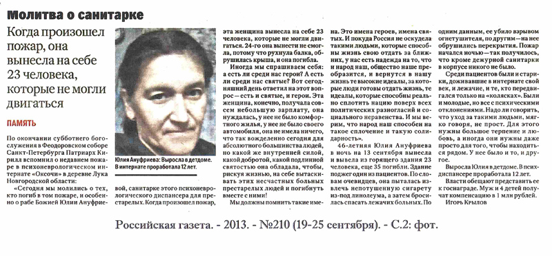 - Крылов, И. Молитва о санитарке / И. Крылов // Российская газета. - 2013. - № 210(19 - 25 сент.). - С. 1.