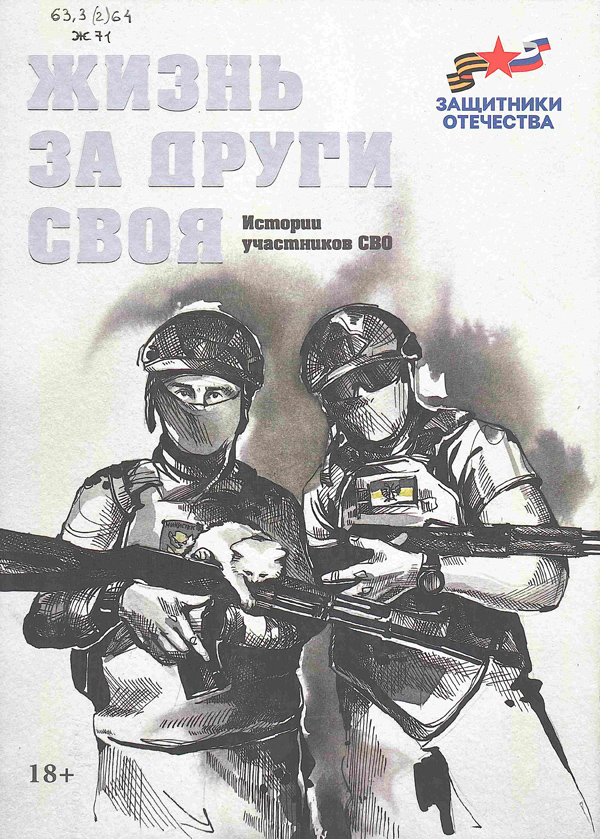 - Жизнь за други своя : истории участников СВО / сост.: З. Прилепин [и др.] ; Благотворительный фонд Захара Прилепина [и др.]. - Санкт-Петербург : Лира, 2024. - 255, [1] с. : ил. - (Защитники Отечества) (КПД). Шифр: 63.3(2)64 Ж 71.
