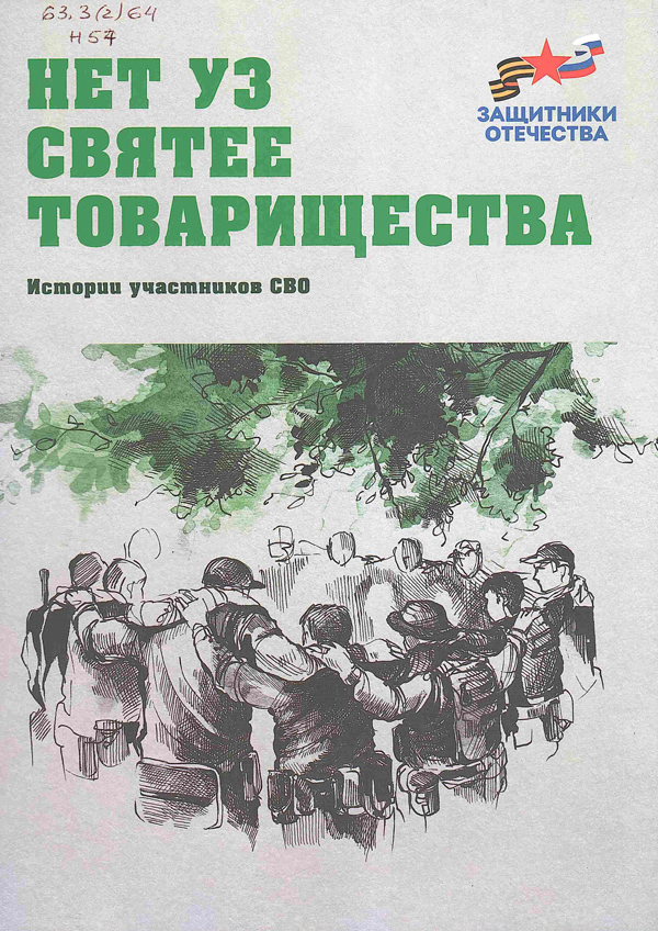- Нет уз святее товарищества : истории участников СВО / сост: Захар Прилепин [и др.] ; Благотворительный фонд Захара Прилепина, Центр Традиция. - Санкт-Петербург : Лира, 2024. - 252, [3] с. : ил. - (Защитники Отечества) (КПД). Шифр: 63.3(2)64 Н 57.