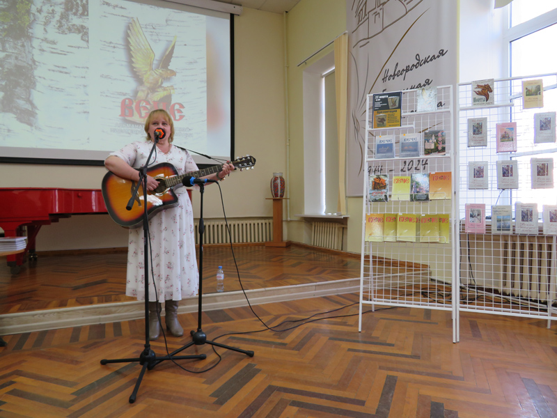По сложившейся традиции презентация сборников органично переросла в музыкально-поэтическую встречу писателей и поэтов Новгородской области. В начале мероприятия прозвучала песня в исполнении Анны Стрелковой «Здравствуй Новгород», написанная на слова и музыку новгородского композитора А. Степанова. Очень трогательным оказался видеоролик с песней собственного сочинения Натальи Лимоновой. Присутствующих порадовал дуэт «Мелодии любви» из г. Пестово, его члены – Эдуард Статий и Елена Подлесная - исполнили несколько песен, среди которых прозвучали песни на слова новгородских поэтов М. В. Паскуль и В. С. Скворцова. Наталья Иванова из Малой Вишеры под гитару исполнила песни собственного сочинения. Свое песенное творчество представила ведущая Надежда Семенова.