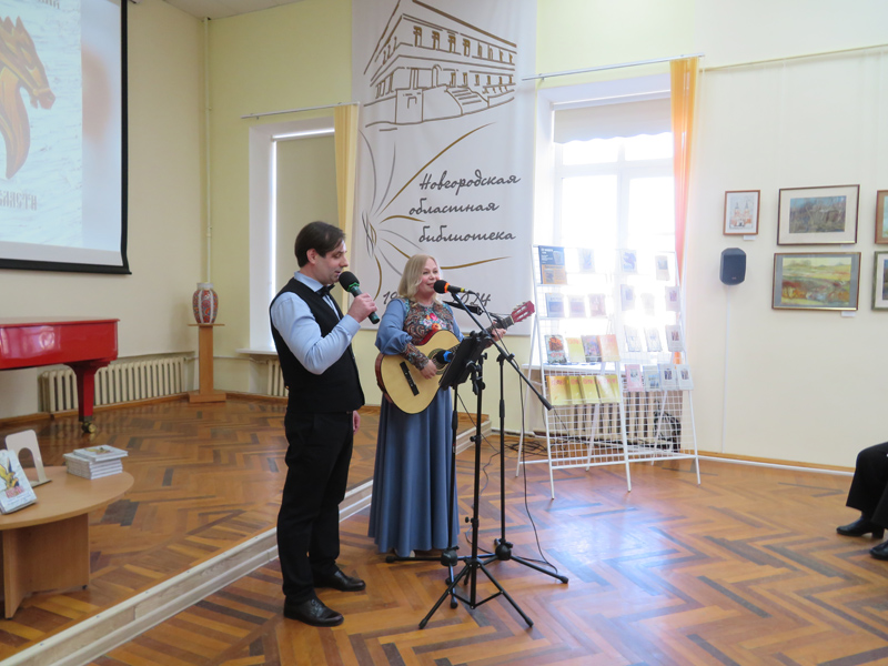 По сложившейся традиции презентация сборников органично переросла в музыкально-поэтическую встречу писателей и поэтов Новгородской области. В начале мероприятия прозвучала песня в исполнении Анны Стрелковой «Здравствуй Новгород», написанная на слова и музыку новгородского композитора А. Степанова. Очень трогательным оказался видеоролик с песней собственного сочинения Натальи Лимоновой. Присутствующих порадовал дуэт «Мелодии любви» из г. Пестово, его члены – Эдуард Статий и Елена Подлесная - исполнили несколько песен, среди которых прозвучали песни на слова новгородских поэтов М. В. Паскуль и В. С. Скворцова. Наталья Иванова из Малой Вишеры под гитару исполнила песни собственного сочинения. Свое песенное творчество представила ведущая Надежда Семенова.